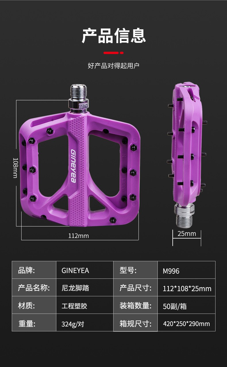 景曄腳踏M996山地自行車配件尼龍培林腳蹬寬面軸承騎行防滑腳踏板配件