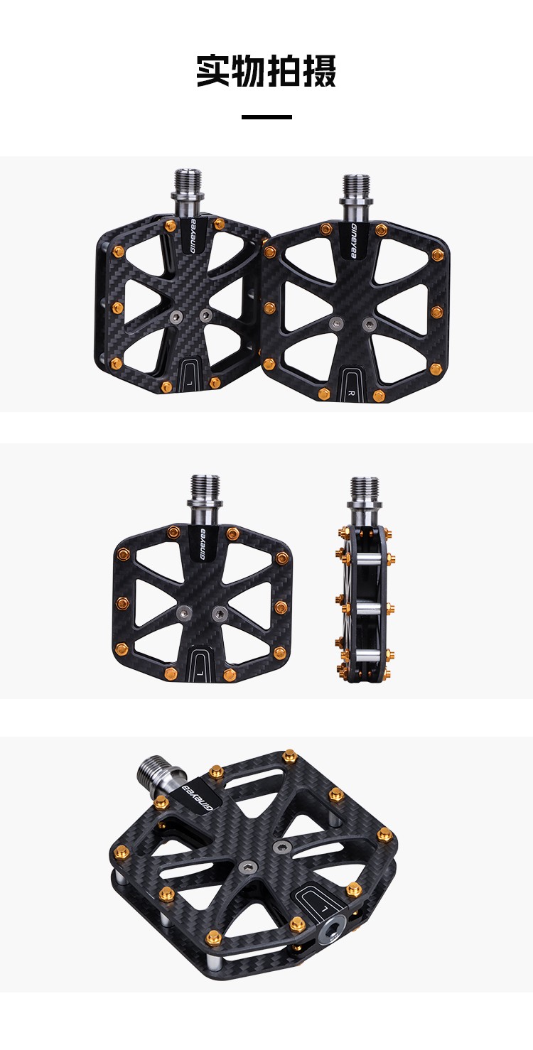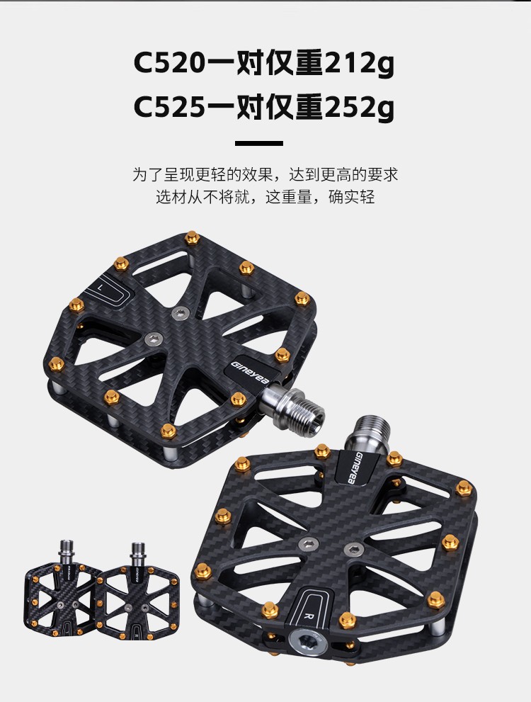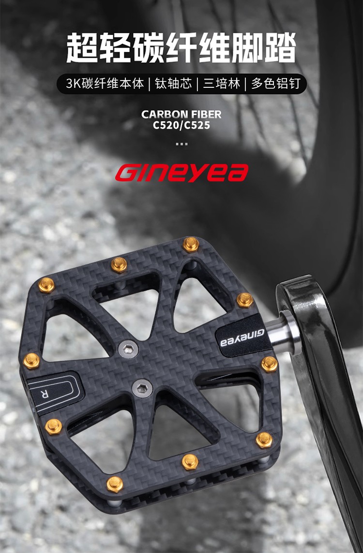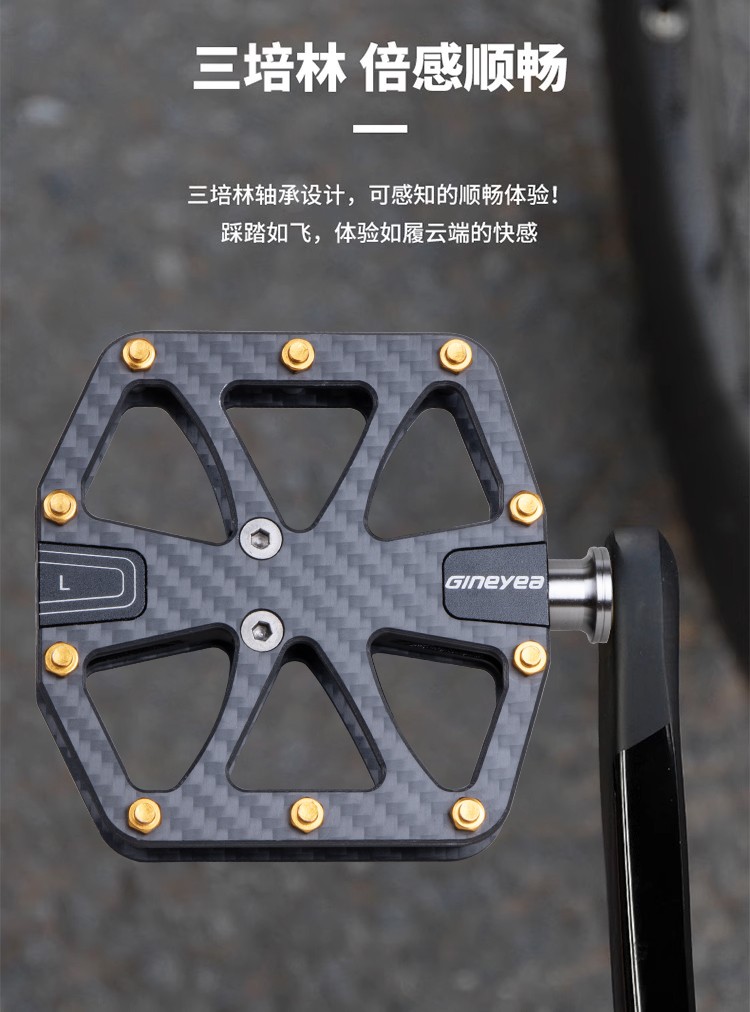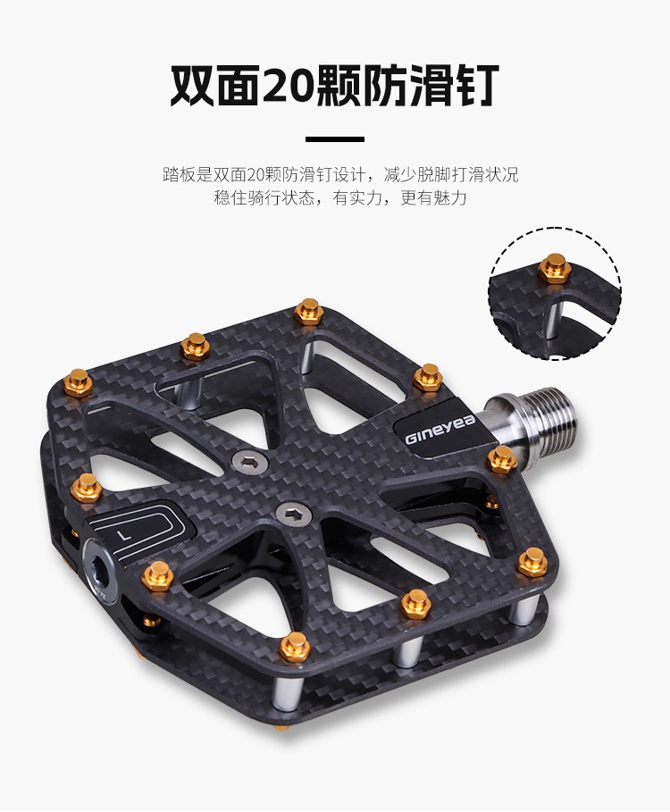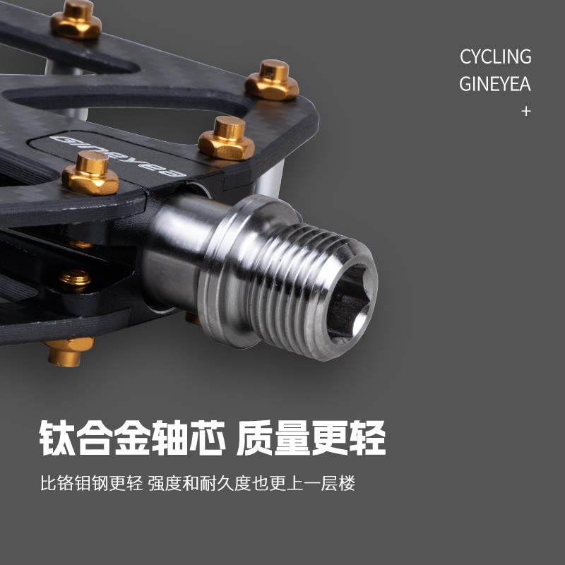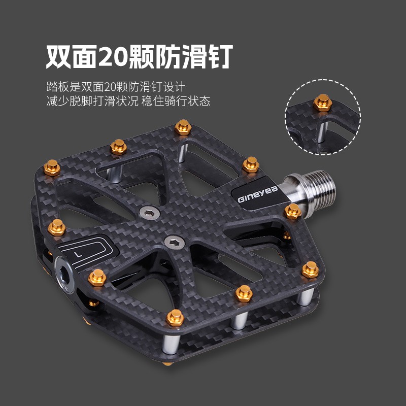 Gineyea碳纖維腳踏自行車公路車山地車防滑釘踩面鈦合金軸腳踏