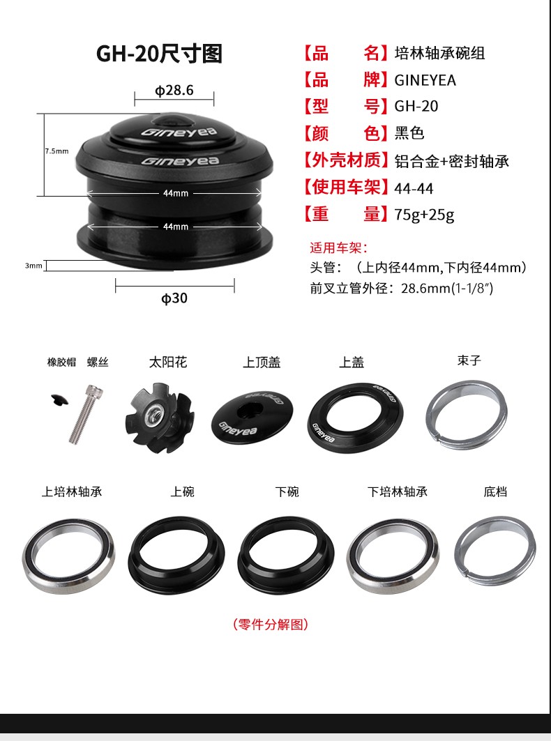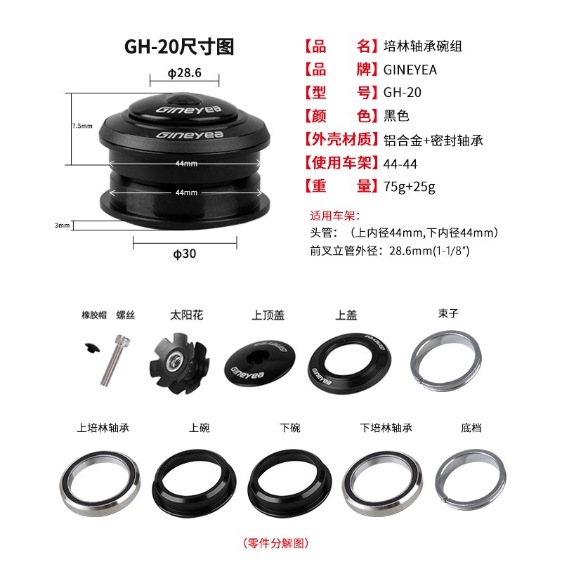 景曄自行車前叉碗組山地車雙培林軸承車頭腕組直管44-44mm