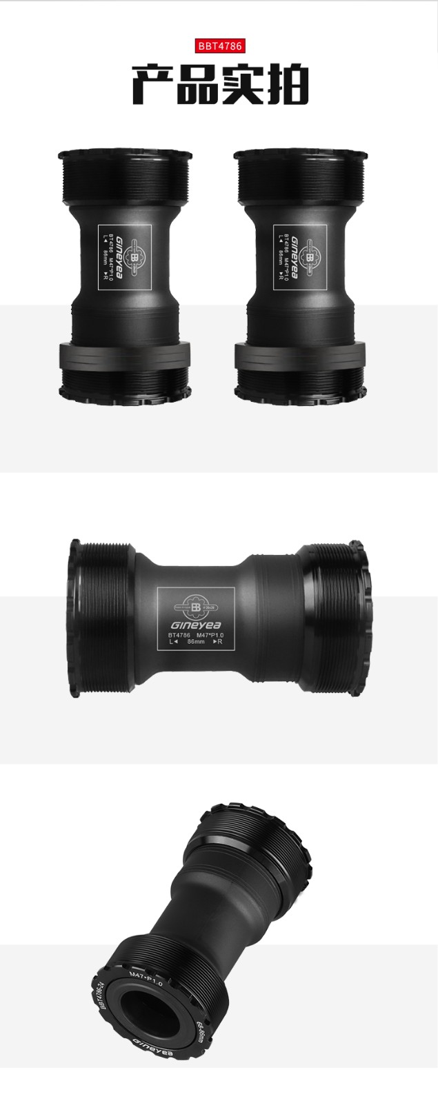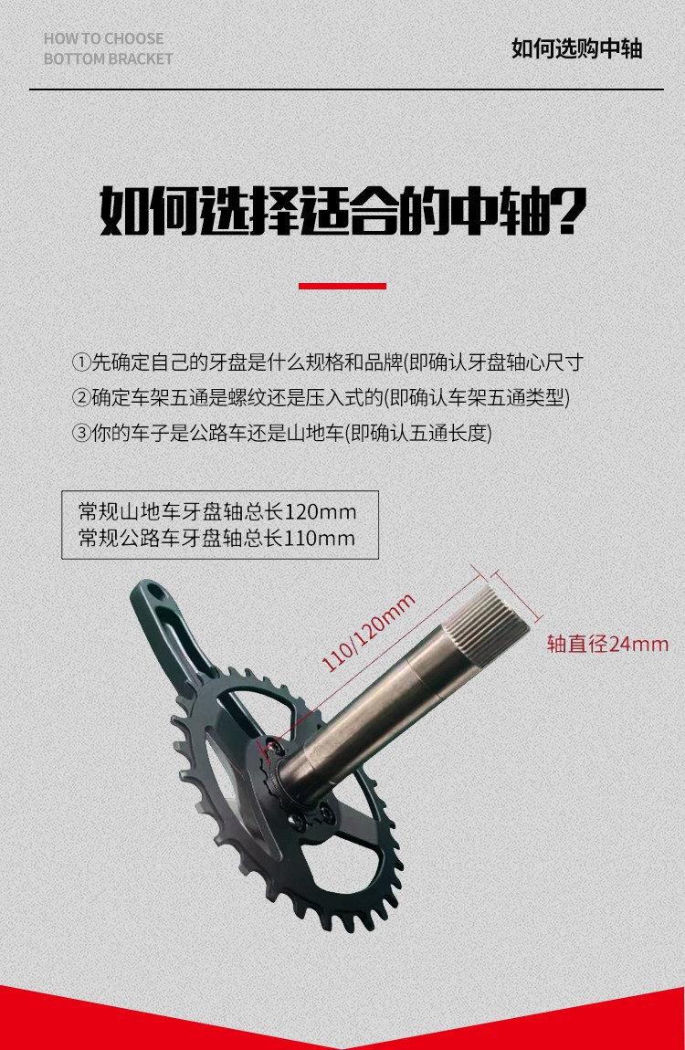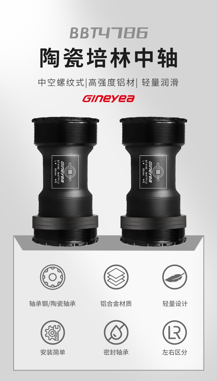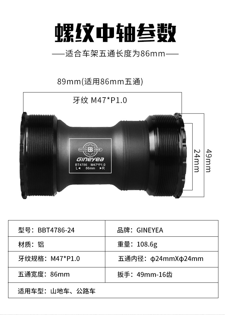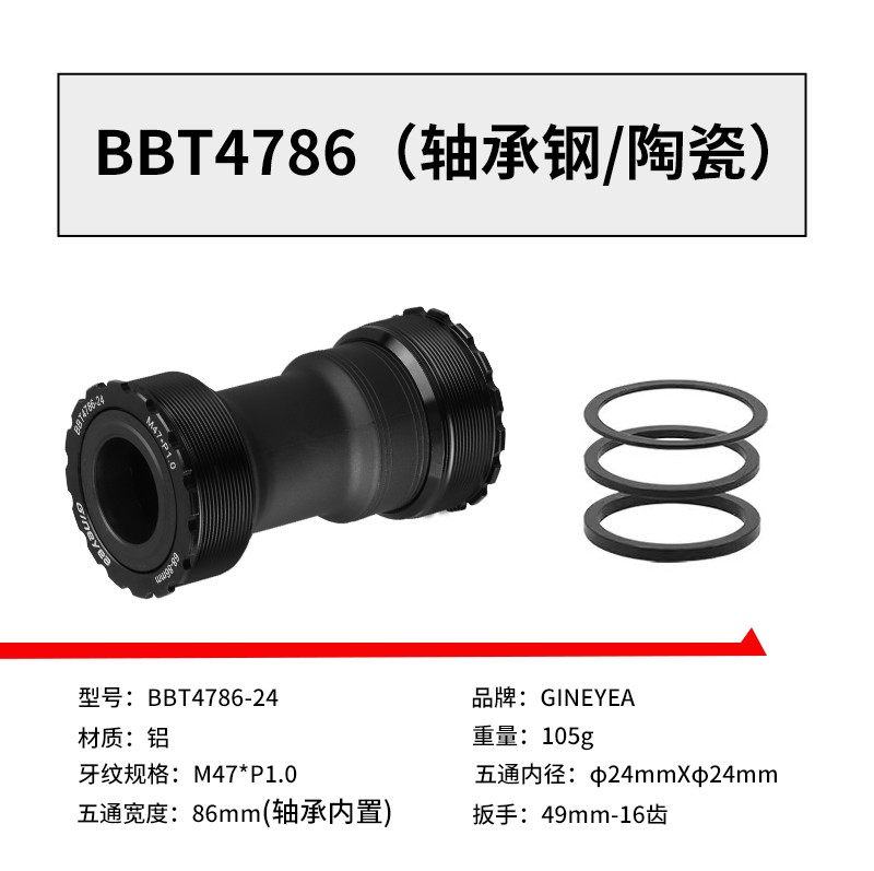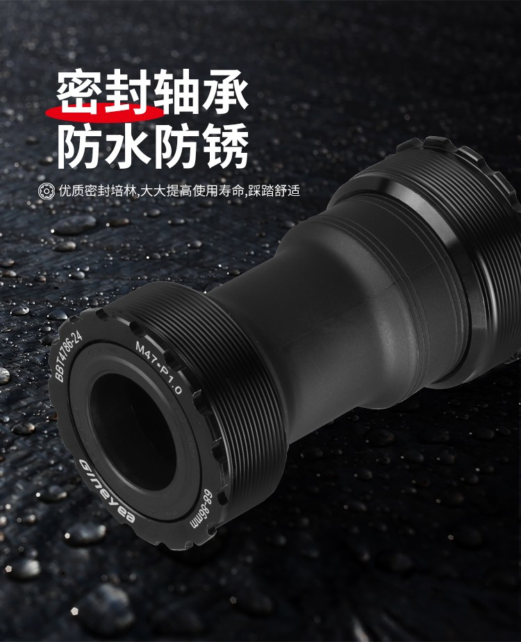 景曄t47中軸內徑24mmBB螺紋培林密封中軸中空一體牙盤旋入式中軸