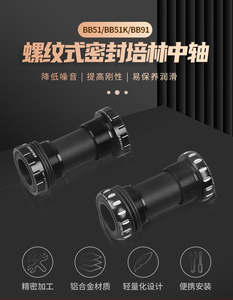 景曄山地公路自行車培林中軸 中空一體旋入式螺紋中軸BC1.37x24T