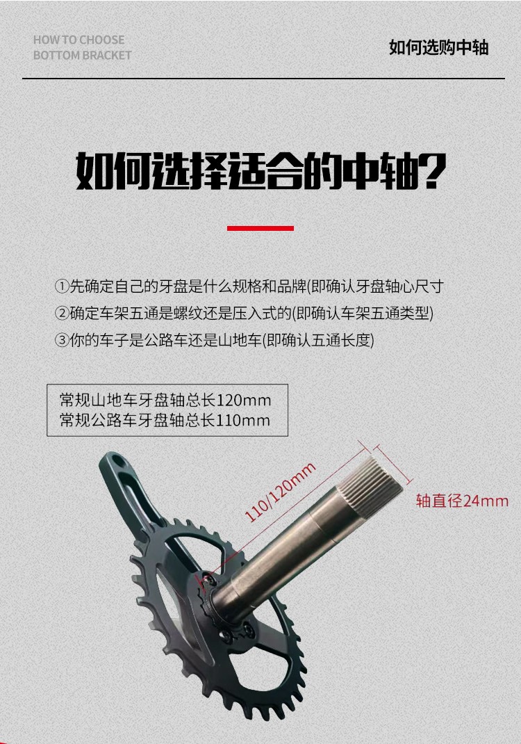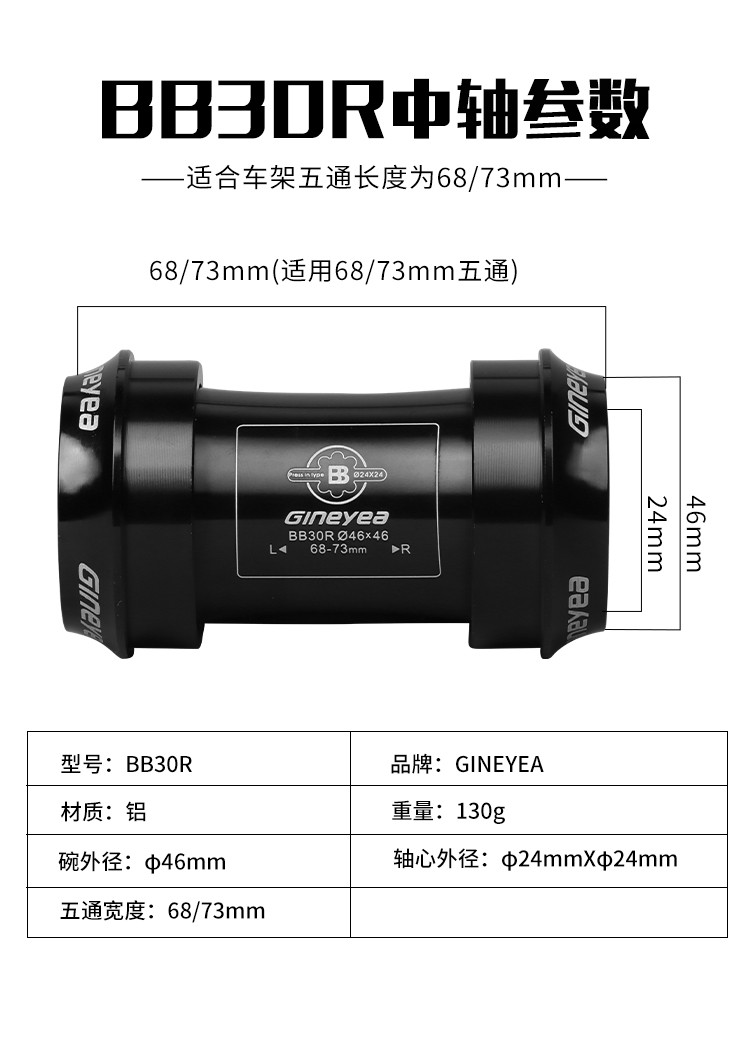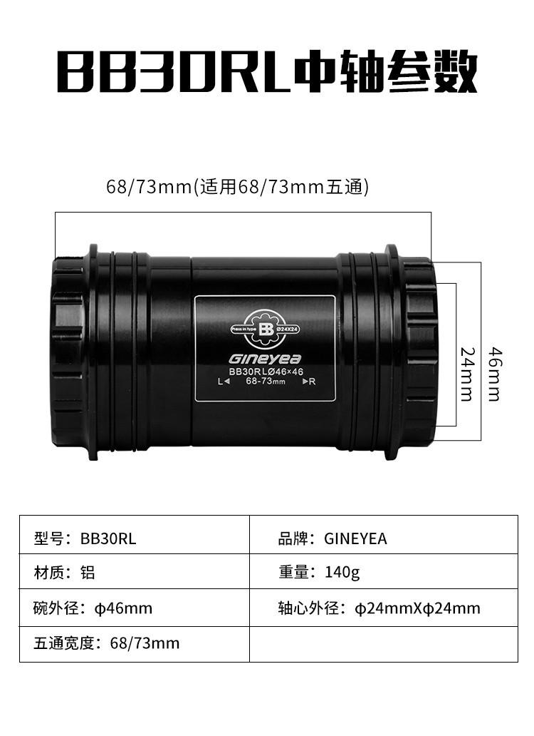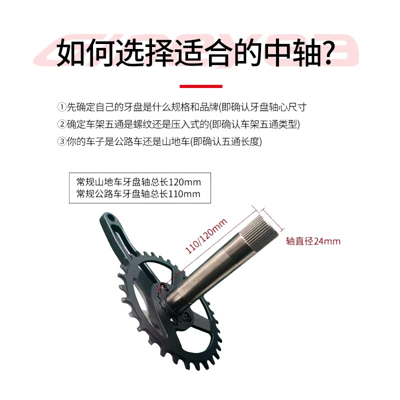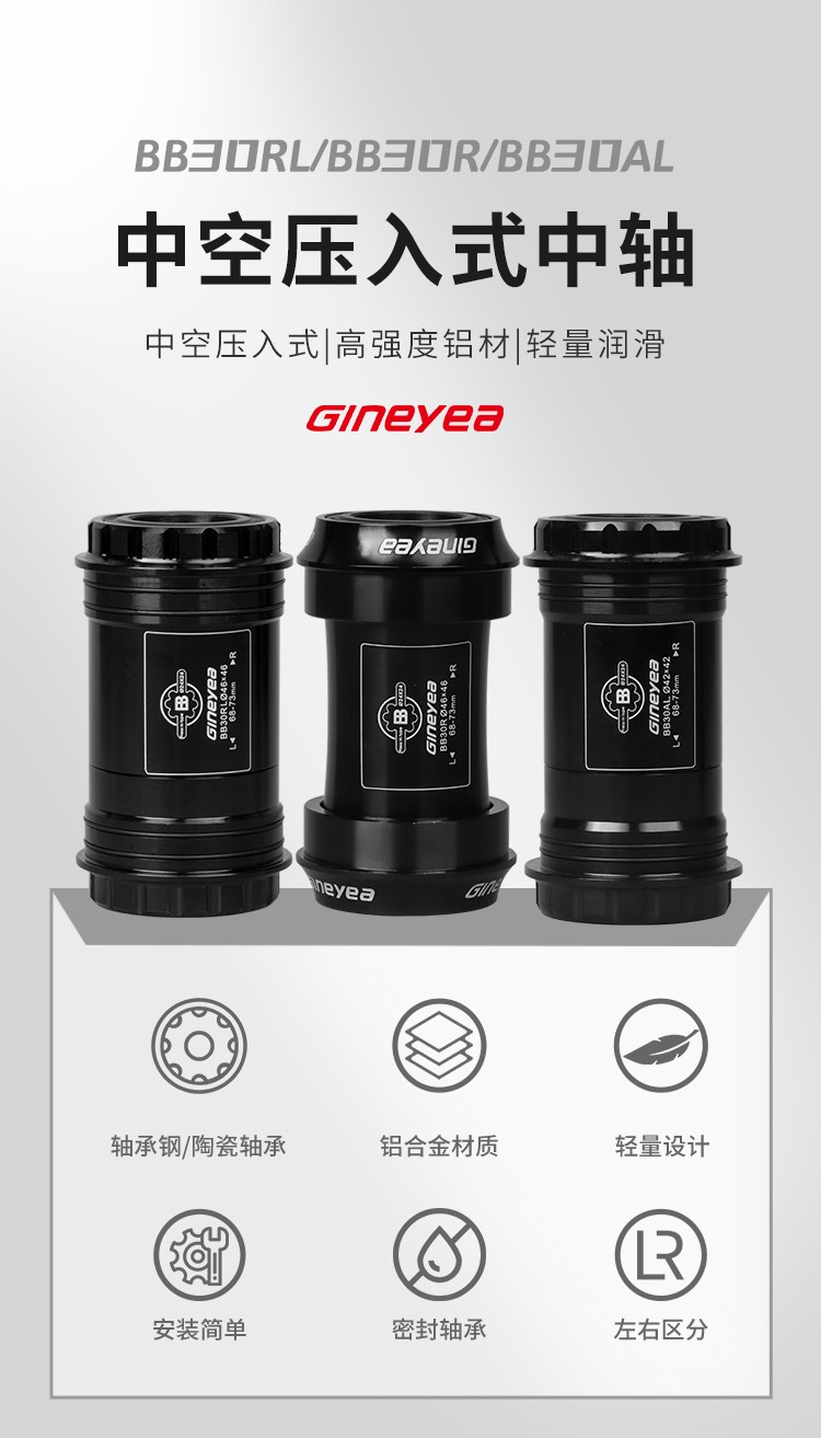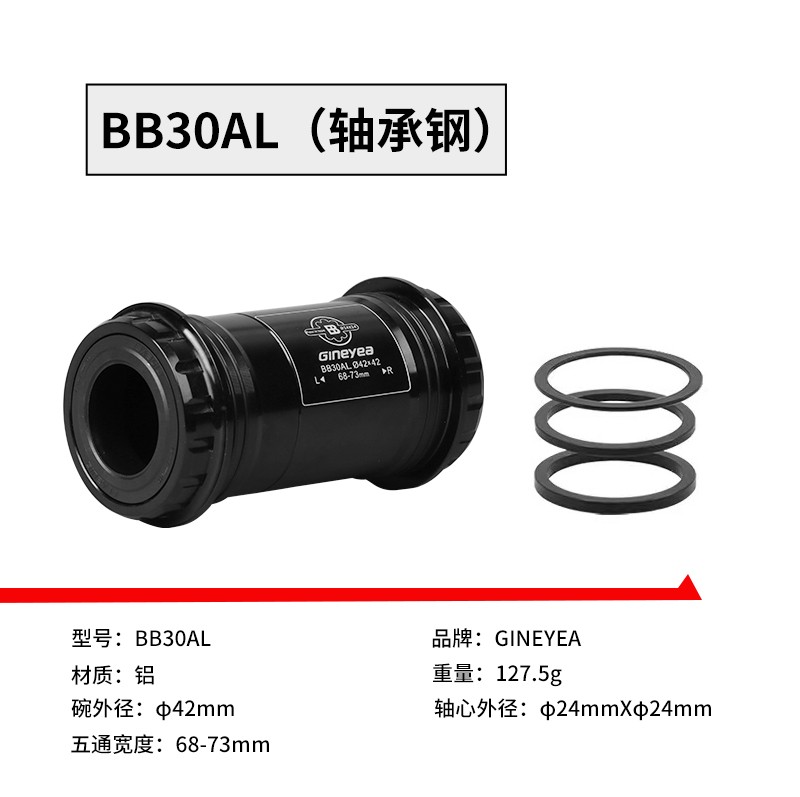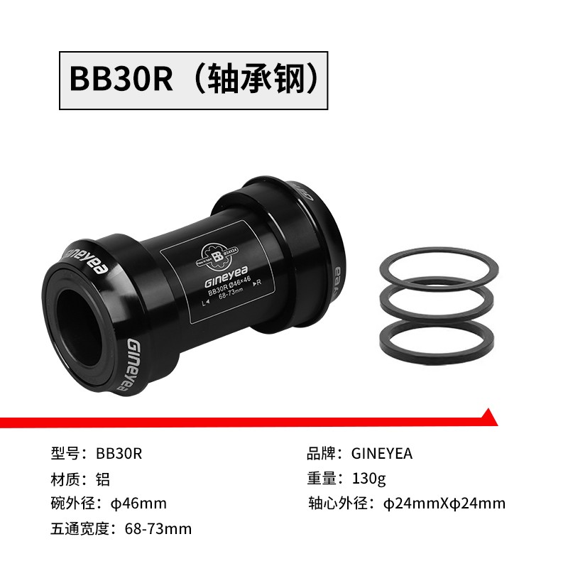 景曄山地自行車培林對鎖中軸中空一體牙盤BB中軸壓入式螺紋中軸
