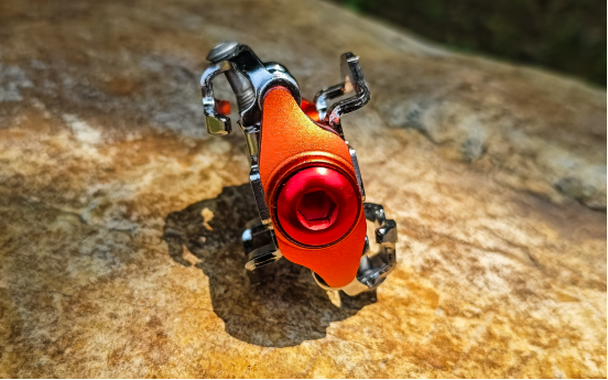 彈簧張力調(diào)整螺絲位于扣片后方。彈簧增加導(dǎo)流槽方式卡緊,長時(shí)間越野騎行也不會造成彈簧松動(dòng)。