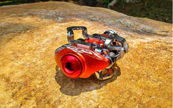 軸心通過一枚陽極紅的大螺絲固定,通過內(nèi)六角拆裝,簡化了保養(yǎng)流程。軸心使用正反牙設(shè)計(jì),防止螺絲隨著踩踏松脫。