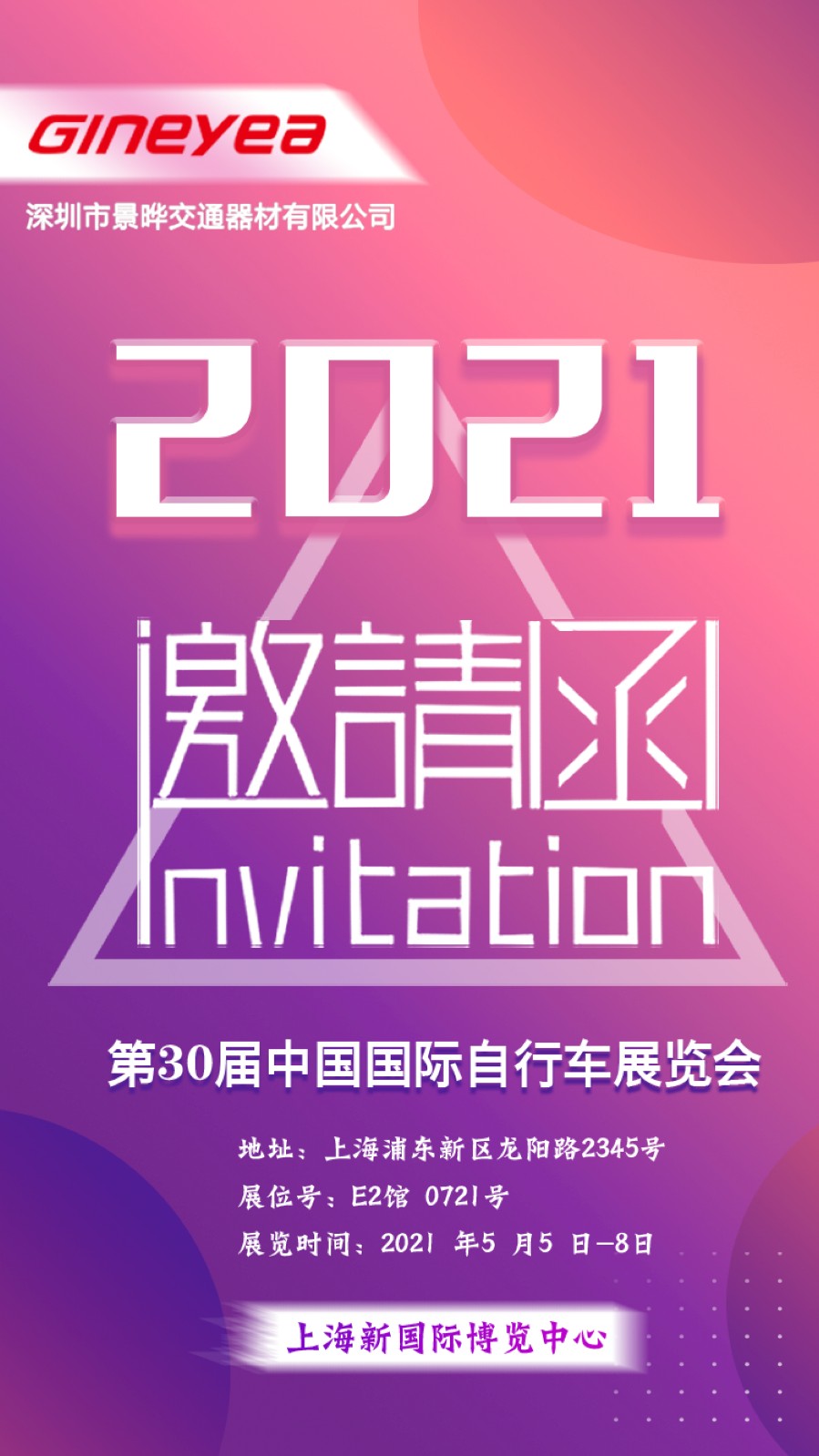 景曄 2021年第30屆中國國際自行車展覽會邀請函