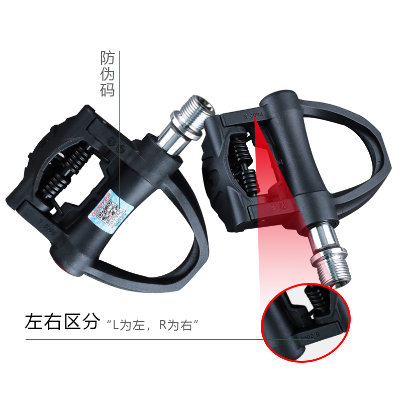 產品描述:品牌:GINEYEA(捷尼亞) 型號:P602 品號:13010426 品名:公路車鎖踏PRO(附鎖片6°)黑色執行標準:ISO4210 工藝:本體及扣片注塑成型材質:本體及扣片為工程塑料 軸心為鉻鉬鋼 顏色: 黑色/紅色/淺藍/橙色#公路車專業自鎖鎖踏,適用SPD-SL系統,自帶鎖片體驗不一樣的騎行速度、穩定、省力,踏板流線型一體化設計,高強度質量輕的尼龍材料加持,一對鎖踏僅重約278g,鎖片重量約88g,松緊度可調節的張力設置,靈...