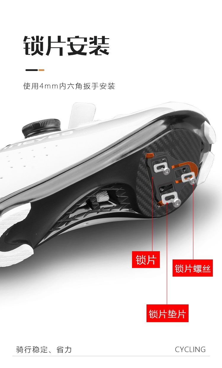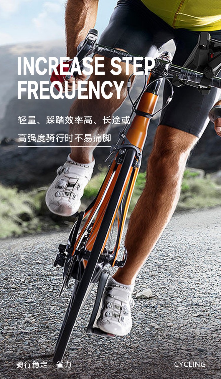 #公路車專業自鎖鎖踏,適用SPD-SL系統,自帶鎖片體驗不一樣的騎行速度、穩定、省力,踏板流線型一體化設計,高強度質量輕的尼龍材料加持,一對鎖踏僅重約278g,鎖片重量約88g,松緊度可調節的張力設置,靈活度更高,統一螺紋口徑14mm。