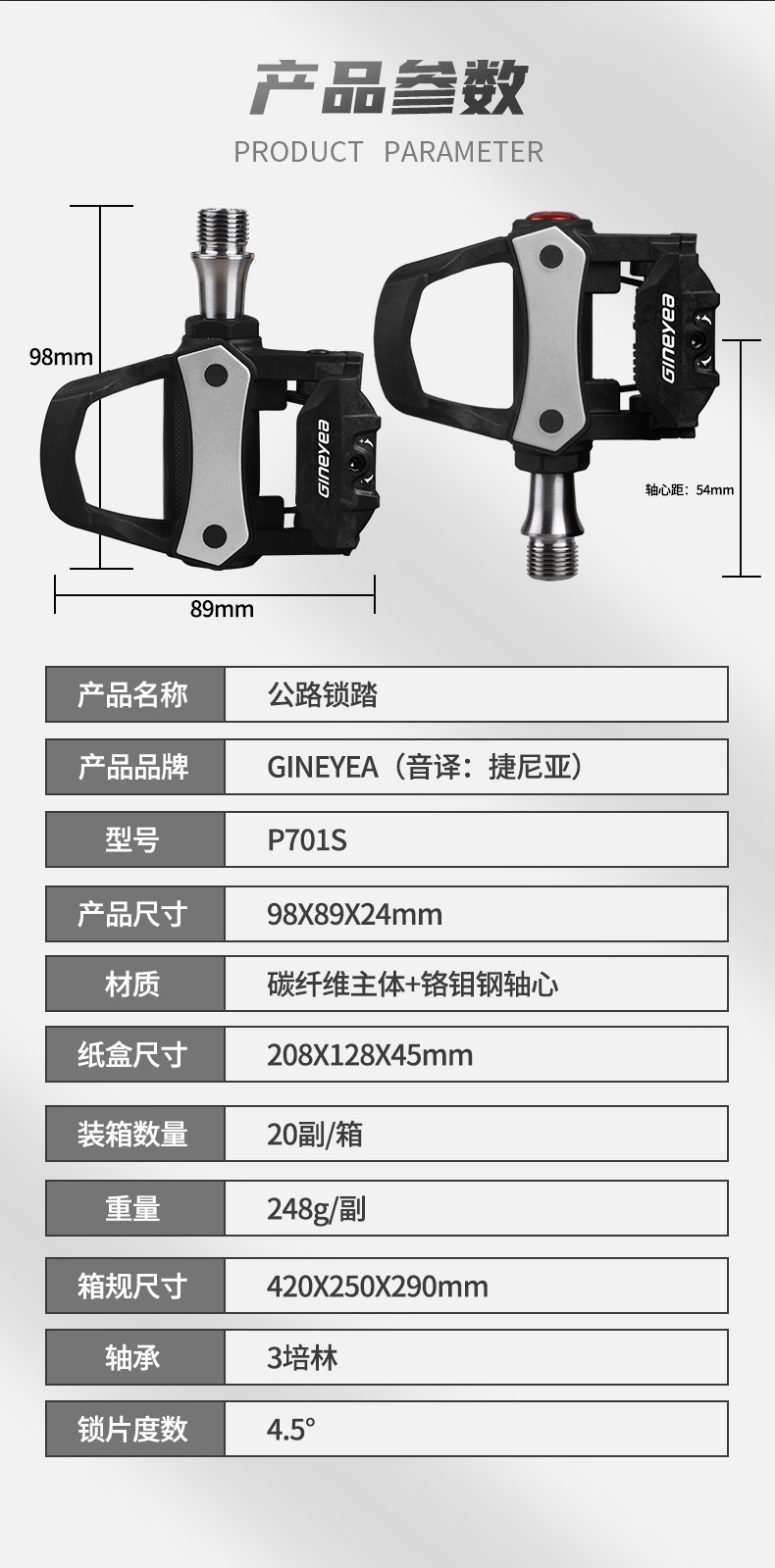 景曄公路車鎖踏三培林碳纖鈦軸自行車腳踏兼容Look系統附鎖片配件